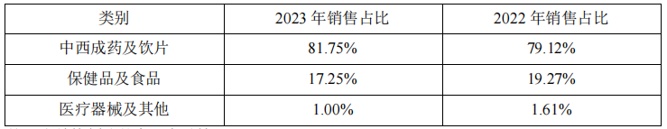 同仁堂商业下属零售药店销售情况变动(按品类结构划分) 图片来源:公司年报
